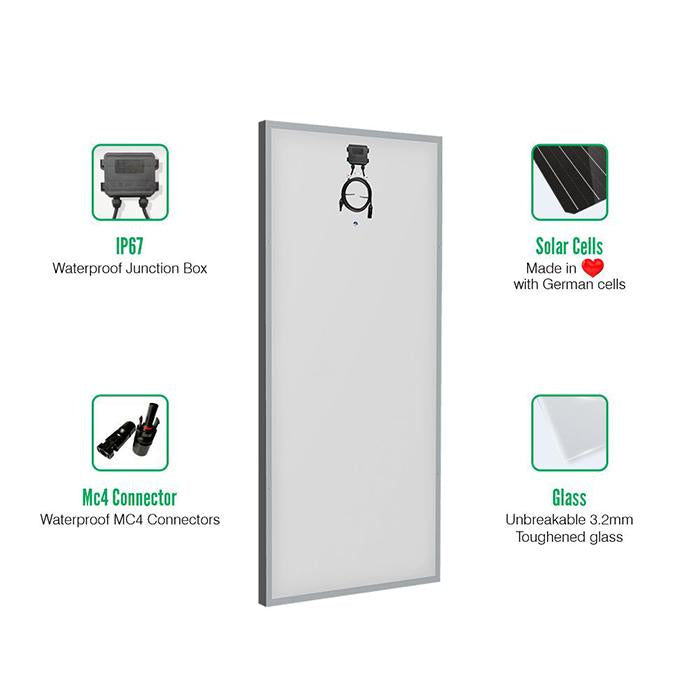 Loom Solar launches 160 Watt solar panels made of A grade Black silicon cells in 12 Volt design to generate electricity from sun. The cells are made of superior quality silicons which gives cell conversion efficiency up to 16%. It is the best solar panels in multi crystalline technology that comes with 5 busbars and 36 cells, 10 years manufacturing defects warranty and 25 years performance warranty. IP 67 rated junction box is given with MC4 compatible cable connector for higher module efficiency.
