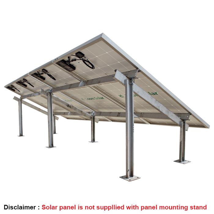 Loom Solar introduces portable solar Installation kit for 4 nos. of solar panel. You can install solar panel from 320 watt ~ 400 watt of any brand and any make. The portable solar panel stand is made of galvanized iron, the rust proof solar panel stand life is is more than 25 years.